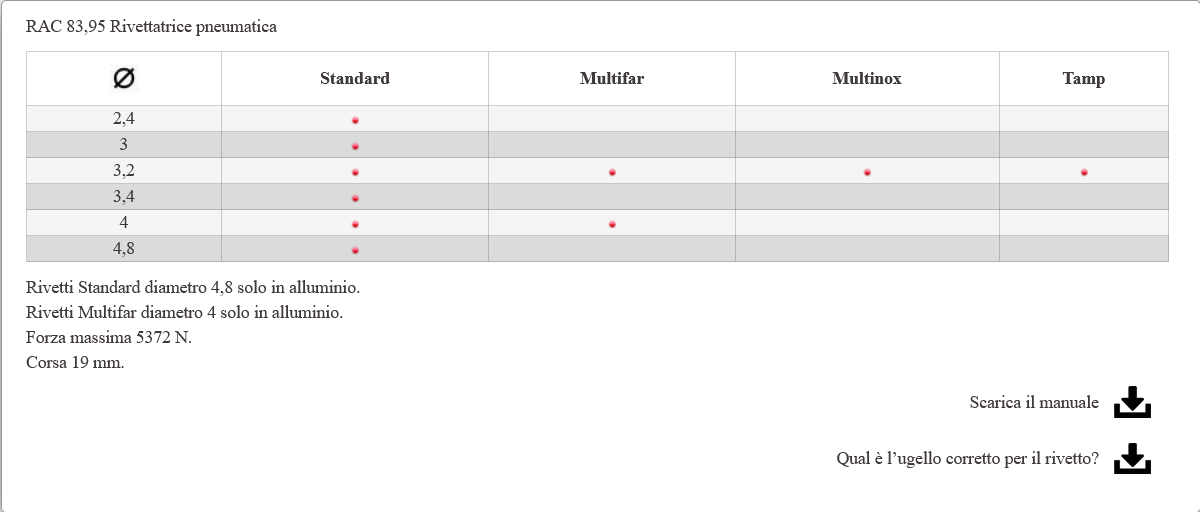 - Diametro rivetti 2,4 ÷ 4,8 mm