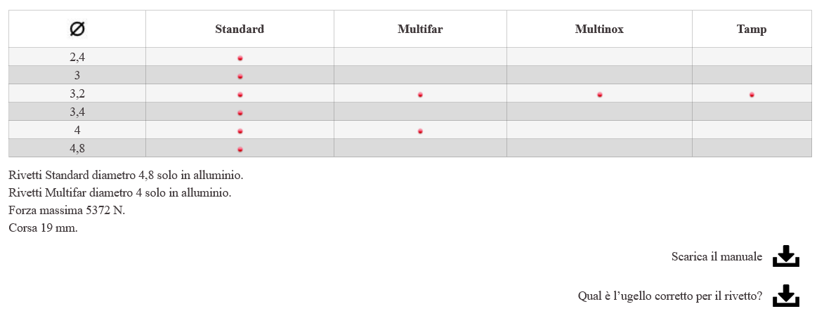 - Diametro rivetti 2,4 Ć· 4,8 mm